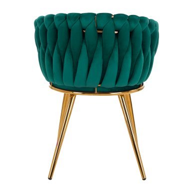 The pleasant-to-the-touch material, velvet upholstery in shades of green gives the chair a unique character, and the aesthetically interwoven fabric on the backrest emphasizes the unique appearance of the furniture. This gives it an exclusive look and ensures comfort of use. The frame in shades of gold adds elegance and prestige, perfectly matching the velvet. The elegant 4Rico chair is an exceptionally comfortable piece of furniture that will decorate the reception area of any beauty salon.