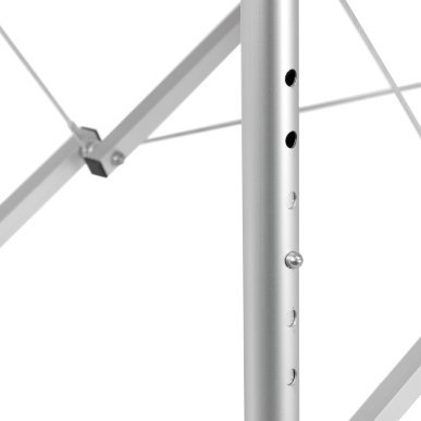 The height of the table can be adjusted to the height and individual needs of the person performing the treatment using a telescopic adjustment from 58 to 80 cm with a locking mechanism. Each of the table's aluminum legs consists of two tubes that can be freely moved relative to each other after being unlocked. The Fast Lock mechanism holds the elements in the selected position once the lock is placed in the appropriate hole. Additionally, the frame structure is stabilized with metal cables, which makes the massage table solid and perfect for a wide range of services.