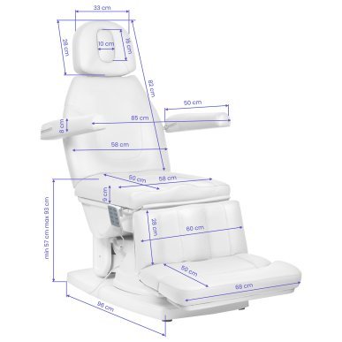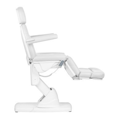 The Kate electric podiatry chair combines functionality with a modern, minimalist design. Equipped with four actuators controlled by a cable remote control, it provides a wide range of adjustments, including a comfortable footrest adjustment. The ergonomically profiled seat and the ability to adjust the chair to multiple positions allow for full adaptation to the needs of the client and specialist. This makes the chair suitable for both podiatry clinics and other facilities requiring comfortable and versatile solutions.