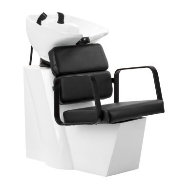 The profiled chair provides adequate lumbar support and, therefore, high comfort of use. Metal armrests in shades of black with a geometric shape allow for the correct positioning of the customer's shoulders. Filling with durable, deformation-resistant foam and upholstery made of pleasant-to-touch synthetic leather in shades of black ensure the durability of the furniture, ease of cleaning and comfortable use for a long time. The original, elegant appearance of the hair wash unit gives the interior a unique expression. The set includes complete fittings in shades of black, including a faucet, a shower head and dedicated hoses to provide a complete set of tools for work.