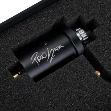 Rotary tattoo machine, PRO-INK Connection Type: RCA Working voltage: 5-12V Power: 4.5W Stroke adjustable 1mm-5mm Made of high-grade aircraft aluminum. A multi-purpose machine, ideally suited to traditional needles and cartridges. Thanks to the wide tension range and adjustable stroke, it is ideal for contours and fillings.