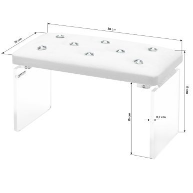 The appropriate height of the support ensures a comfortable position for both the client and the stylist. The correct posture of the stylist minimizes strain on the spine, effectively reducing back pain, while the client enjoys greater comfort and relaxation. Silicone elements on the legs protect the tabletop against scratches and prevent it from sliding on the table, ensuring stability. The plastic frame and elegant velour ensure the product's long durability, and decorative crystals give it a unique look.