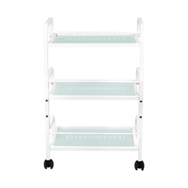table for cosmetic devices 1014 aesthetic table for cosmetic devices, made of metal and glass, with wheels. has three glass shelves with engraved giovanni logo. dimensions: - table dimensions80,5*54*38 cm technical data: - white color - glass shelves - package dimensions 76*40*19 cm - number of packages 1