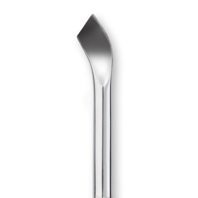 - made of polished, inox stainless steel, used for the production of surgical instruments - has two different precise ends: a slightly curved and beveled knife with a blade width of 4.5 mm and rounded and convex chisel with a blade width of 8 mm - slightly notched handle, preventing slipping and sticking in the hand while working - can be disinfected and sterilized by any method (chemical, thermal , chemical and thermal) - total hoof length: 13.3 cm - weight: 20 g
